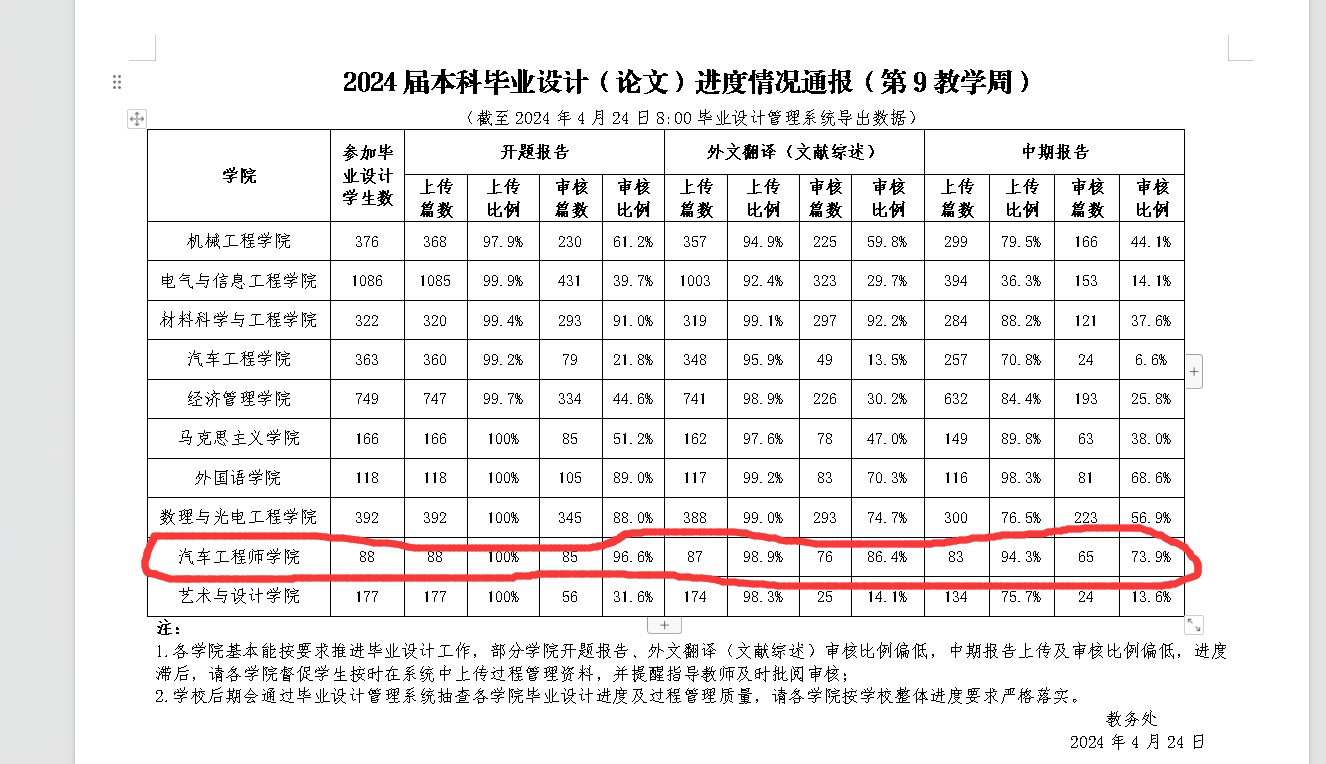 为加强毕业设计过程管理,学院组织指导教师对学生毕业设计中期任务的完成情况、毕业设计资料规范性、教师指导情况开展自查。指导教师根据学生毕业设计(论文)任务中期完成情况、工作态度、出勤情况等方面给出评价。通过毕业(论文)设计管理系统数据显示,我院毕业设计(论文)进度按计划正常推进。