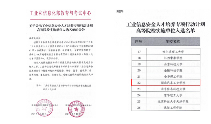 二、湖北汽车工业学院获批工业和信息化部“工业信息安全人才培养专项行动计划”项目公示