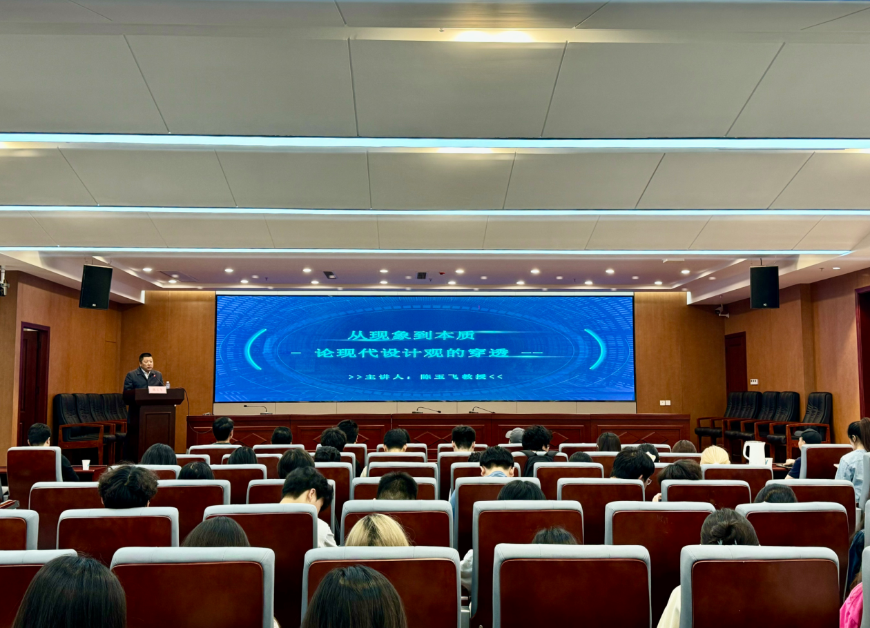 4月17日下午,产教大楼三楼“至臻美育”讲坛第五讲隆重举行。本次讲坛特邀了上海应用技术大学的陈玉飞教授,他以“从现象到本质:现代设计观的穿透”为主题,为现场200余名师生带来了一场别开生面的学术盛宴。讲座由艺术与设计学院分党委书记黄进涛主持,气氛庄重而热烈。。
