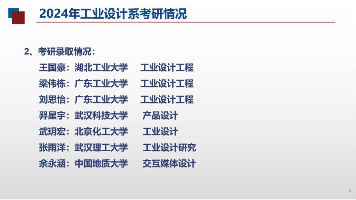 会上,刘敏老师首先详细介绍了2020级工业设计专业的考研情况。她指出,全班共有16人报考,其中7人成功被录取,报考率高达50%,录取率也达到了22%,均创下了历年新高。这一喜人的成绩不仅彰显了同学们的辛勤付出,也为后续的考研学子们树立了榜样。
