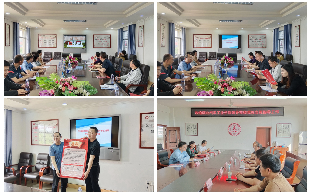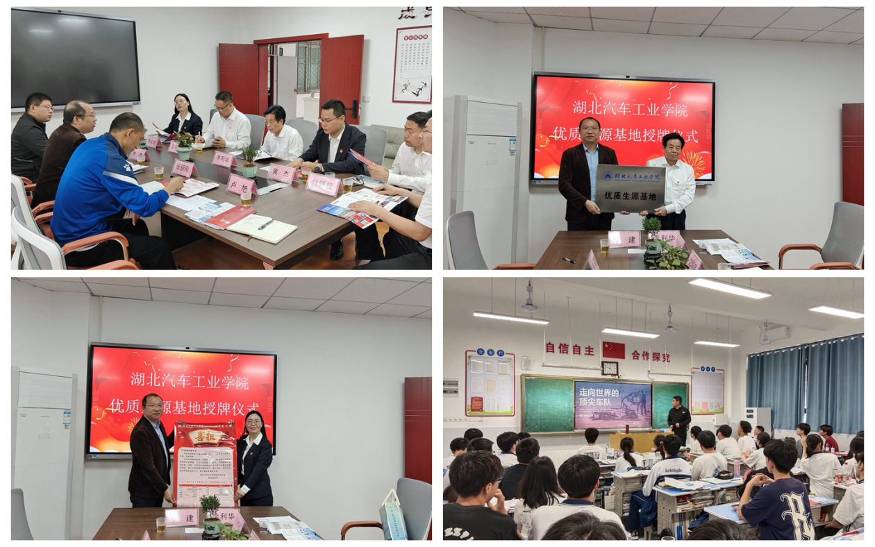 4月23日,张默、李建带队走访仙桃市第八中学、仙桃市第一中学、湖北省仙桃中学、仙桃荣怀学校、仙桃实验高级中学,开展招生宣传工作。在仙桃荣怀学校,李建代表学校向仙桃荣怀学校授予湖北汽车工业学院优质生源基地牌。