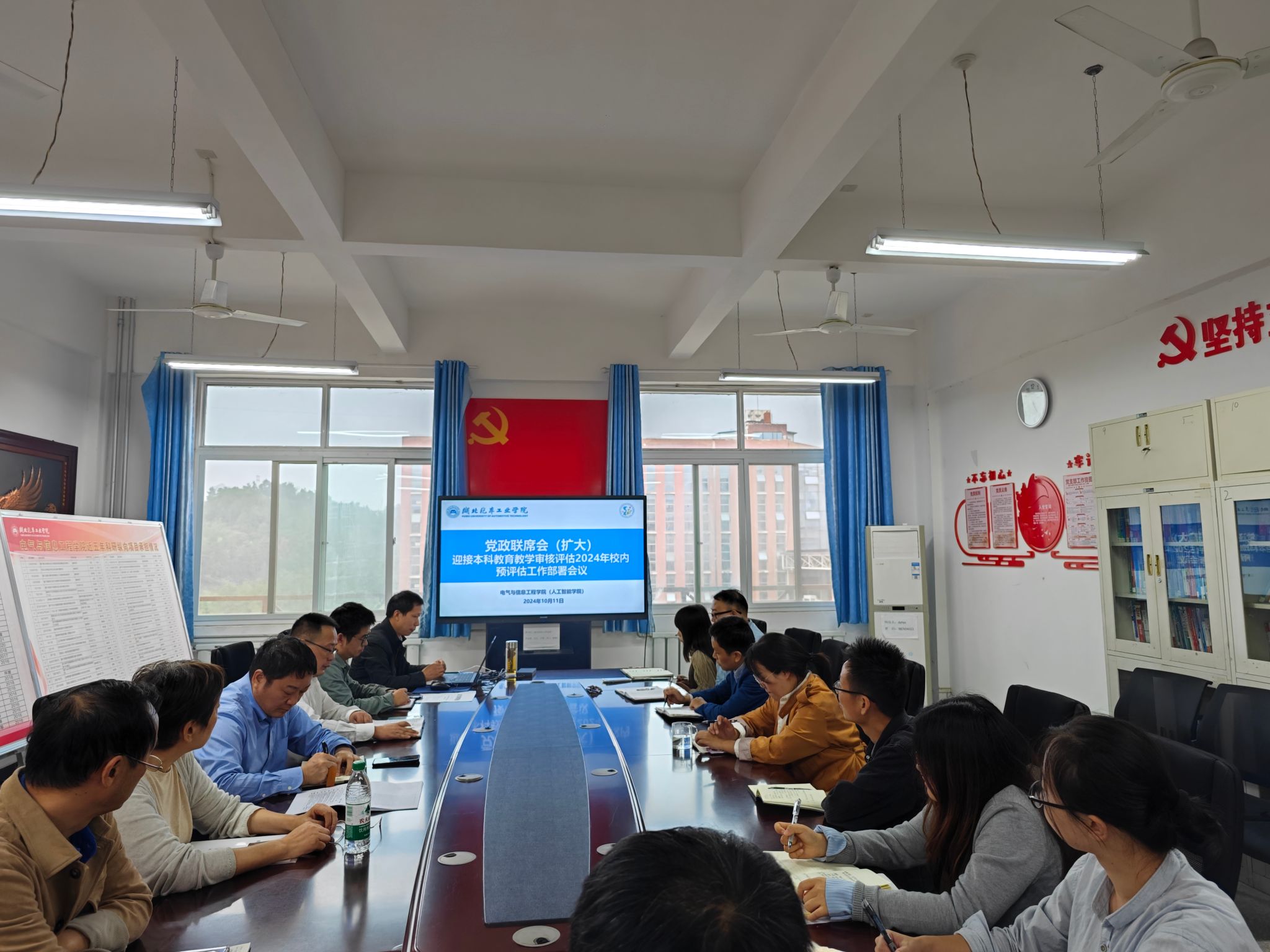 为落实学校本科教育教学审核评估2024年校内预评估工作要求,2024年10月11日下午,电气与信息工程学院在会展室召开迎评工作部署会议,学校教学督导阎菲教授、学院党政领导班子成员和各系/中心/三办主任出席参会,会议由院长黄海波主持。