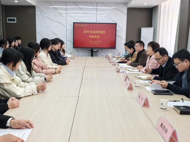 “涉外法治卓越班”开班。3月18日下午,我校“涉外法治卓越班”开班仪式在3206会议室举行。副校长张红霞、法学院院长黄永昌、外语外贸学院院长杨荣广、教务处副处长李行国出席仪式并致辞。法学院、外语外贸学院相关领导、教师代表及首届涉外法治卓越班全体新生参加了开班仪式。湖北汽车工业学院涉外法治卓越班是学校主动服务国家汽车强国战略和湖北“51020”现代产业集群高质量发展需要,实施新时代卓越汽车工程师培养行动之“卓越人才特区计划”内容之一。该班将依托法学院和外语外贸学院的学科优势,采用“法学+外语”的复合型人才培养模式,注重培养学生的国际视野、跨文化沟通能力和解决国际法律实务问题的能力,培养一批立足湖北、面向全国、放眼世界的高素质涉外法治人才。