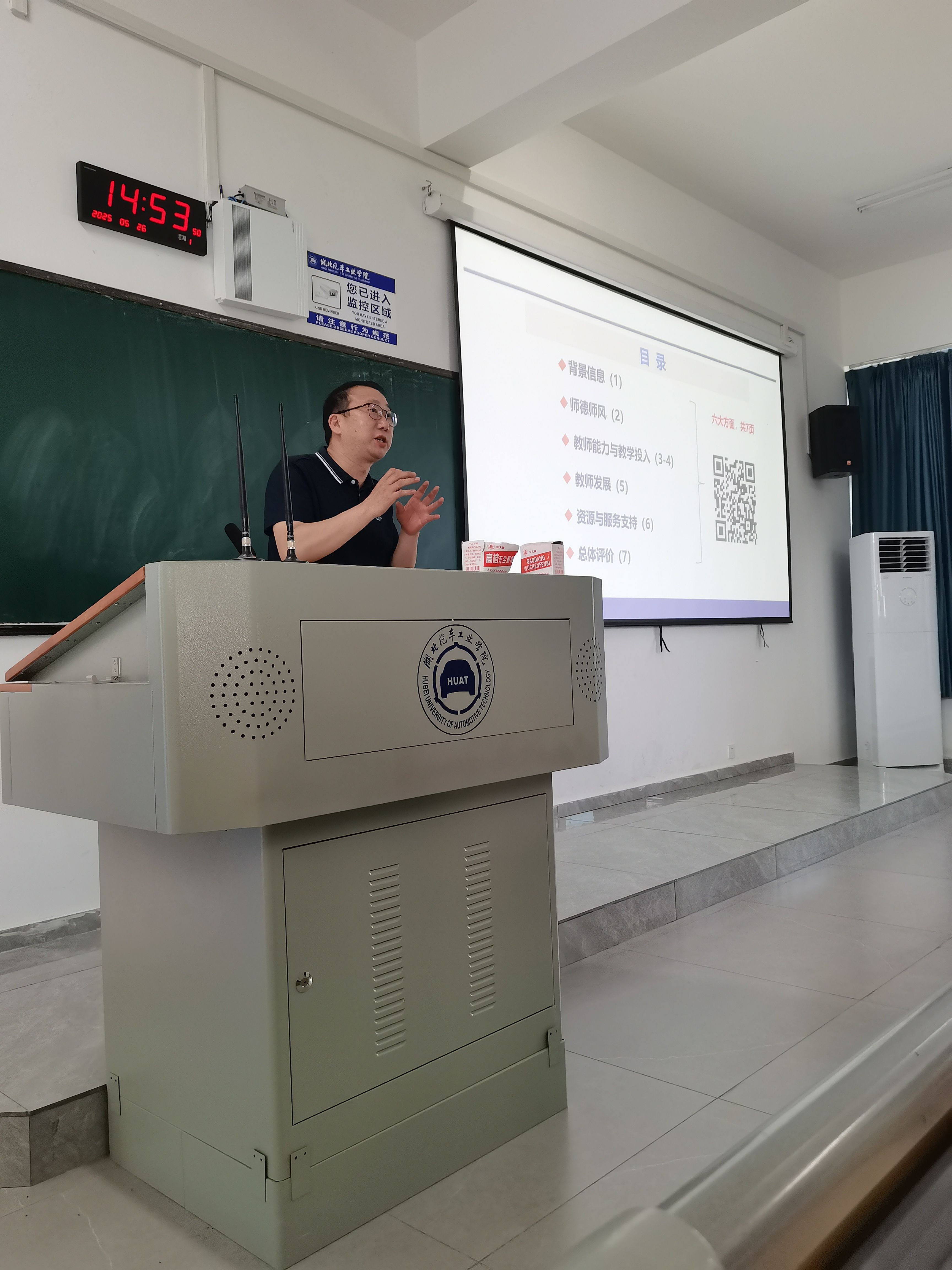 5月26日,全体教职工召开大会,教学副院长胡政发组织宣传并指导填写审核评估教师问卷调查工作。重点强调组织开展各类材料撰写、收集整理及归档工作,不断规范教育教学各环节工作,并开展审核评估工作阶段性总结。要求各系对学院近三年的教学材料(考试试卷、实习材料、毕业综合实训材料、教学大纲等)进行自查和整改,学院进行全面督导检查。增加青年教师教学能力培养,定期开展教学研讨会,分享教学经验和教学方法。鼓励青年教师参与课程建设和教学改革项目。推进强调本科毕设后期工作,对学生多鼓励少批评,多督促。毕业设计要把好关,格式规范、资料齐全符合要求。